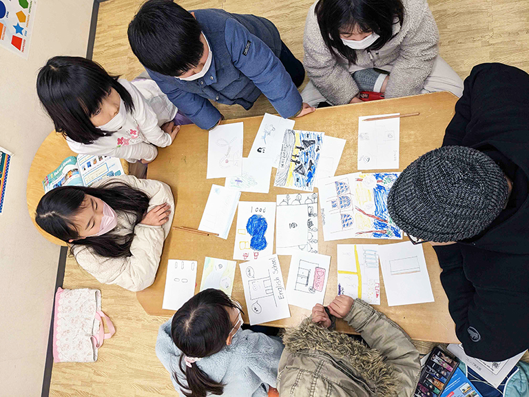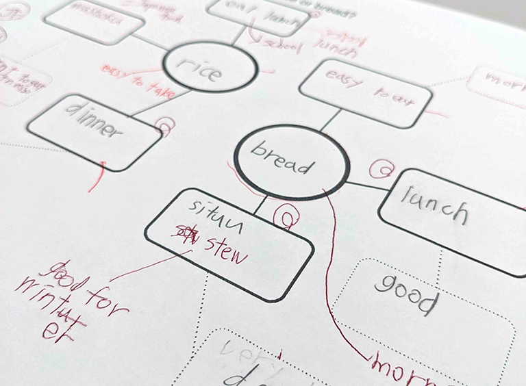 マインドマップ(連想)や工作など、さまざまな活動で、AI時代に欠かせない思考力を鍛える。